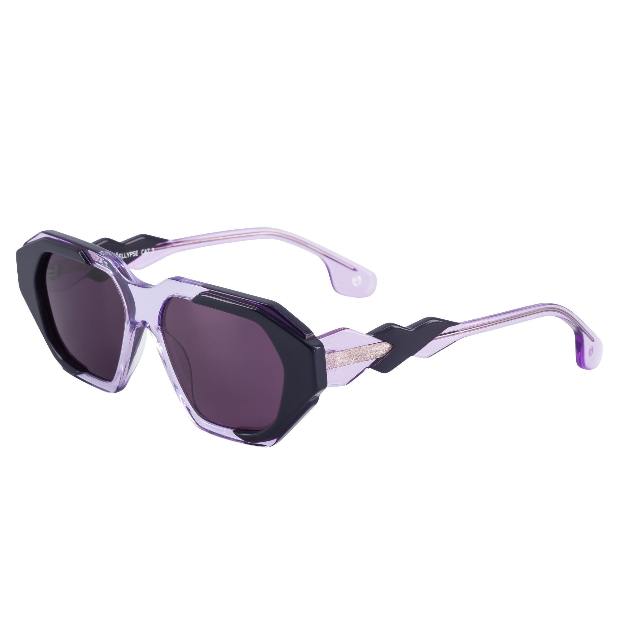 Monture audacieuse en acétate, jouant sur la superposition des volumes et des textures. Sa construction fragmentée exprime une esthétique moderne et dynamique. Déclinée en gris avec base cristal et en lavande avec base cristal lilas, elle apporte profondeur et subtilité au regard.