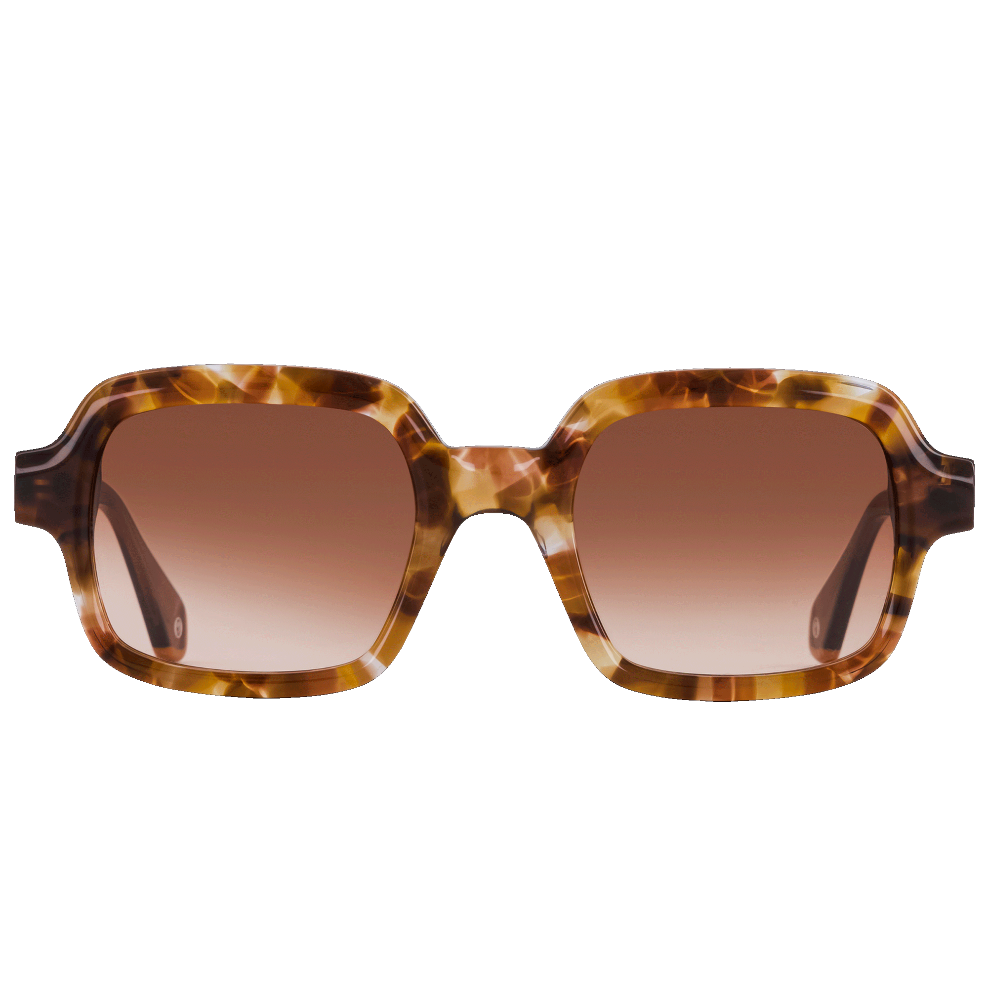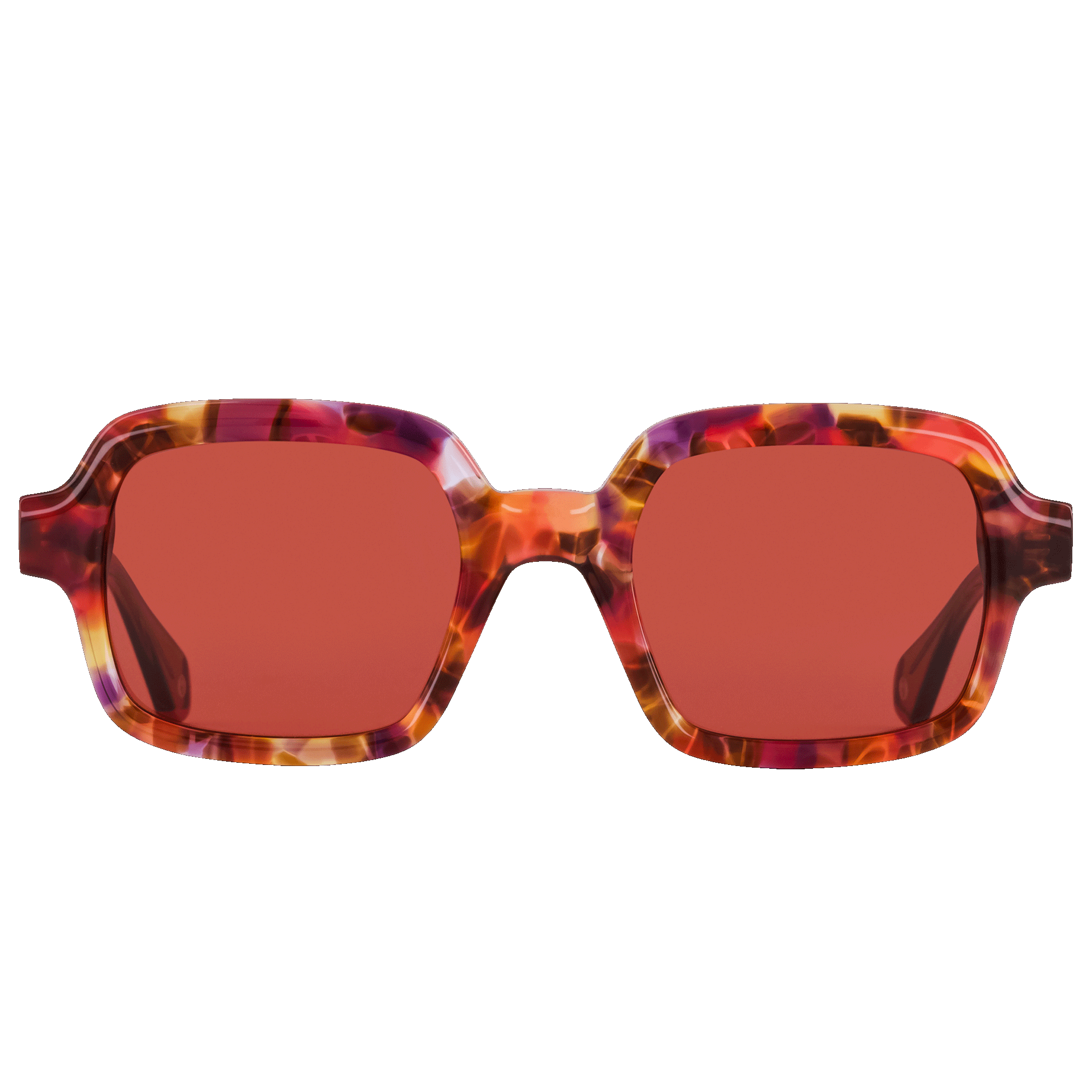 Monture rectangulaire oversize en acétate au design graphique et sculptural. Les branches, à l’allure bijou, s’harmonisent avec les faces en écailles ornées de motifs floraux dé...